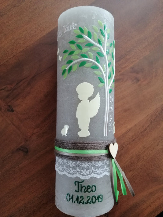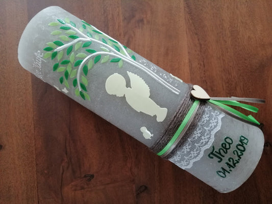 TAUFKERZE VINTAGE-Look RUSTIK, Rustikal, Lebensbaum, Schutzengel, Engel, Baum, Mädchen, Junge, Kerze, Taufe, inkl Wachsbeschriftung