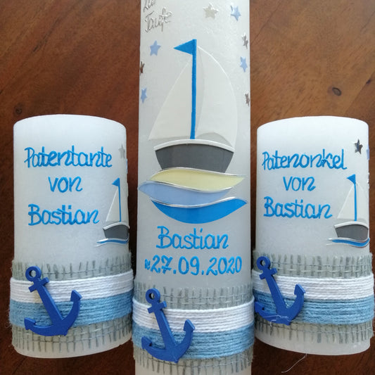 Taufkerzen Rustikal, Boot, Arche, Mädchen, Junge, Vintage-Look Rustik, Set inkl Wachsbeschriftung, Patenkerzen