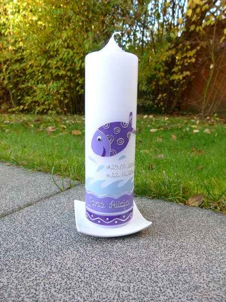 The christening saying was beautifully decorated. I thought the price was a bit high considering it was "only" printed and not made of wax letters (we were aware of this beforehand, of course), but we definitely wanted it on the candle.