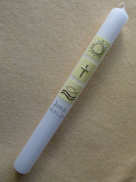 I've ordered baptism candles for all three of my children here, and I'm always very satisfied. My changes and requests are always implemented perfectly, so I can look forward to a beautiful and unique baptism candle. Contact is quick, and the candle is delivered on time. Thank you very much!