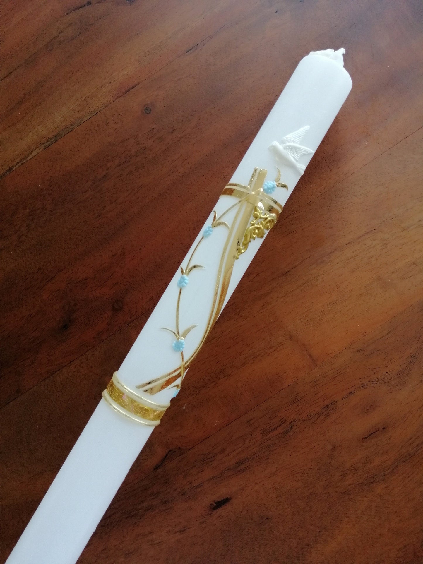 A beautiful communion candle, lovingly crafted. Friendly service. A unique gift. Thank you so much.