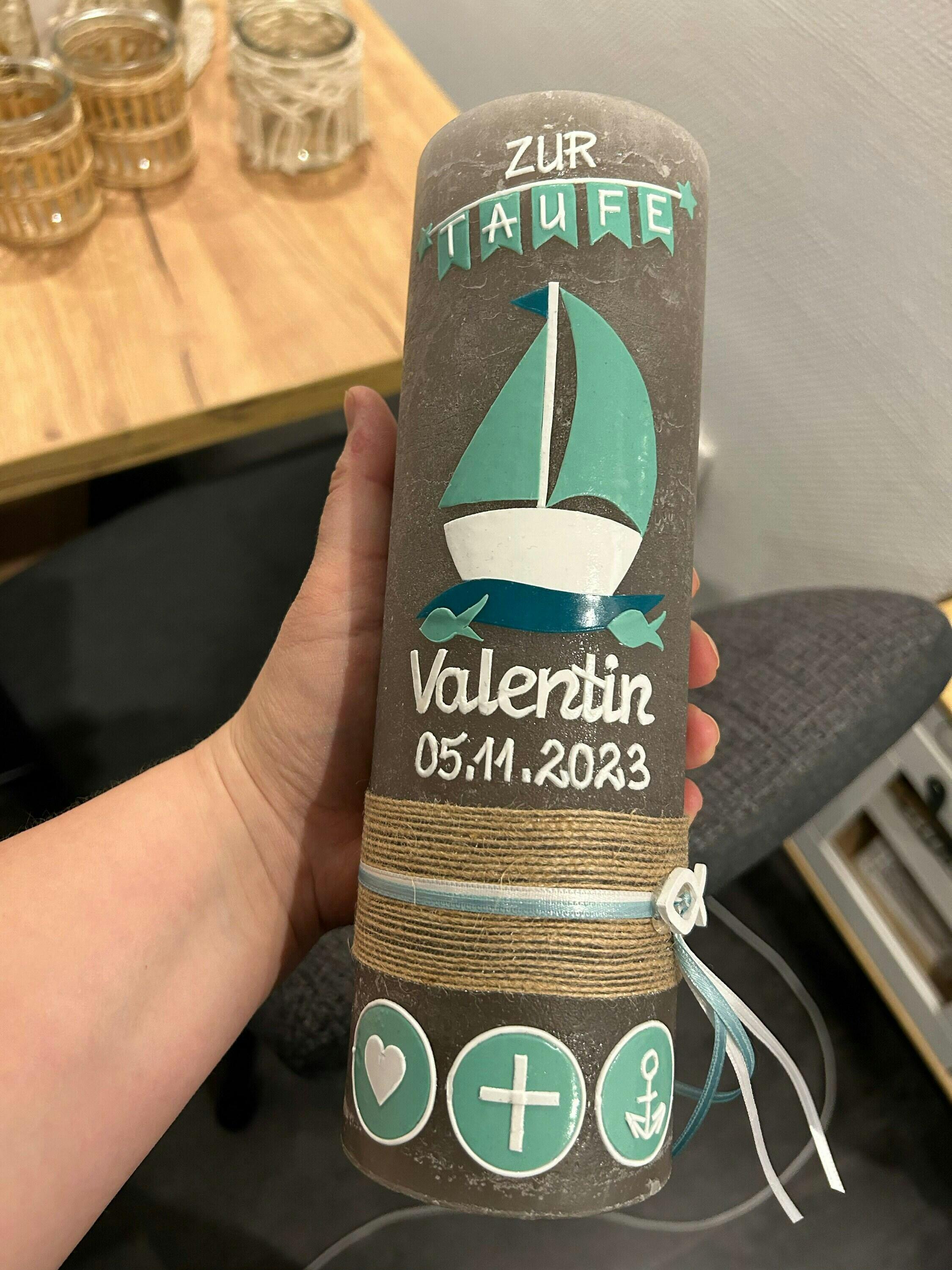 I've ordered baptism candles for all three of my children here, and I'm always very satisfied. My changes and requests are always implemented perfectly, so I can look forward to a beautiful and unique baptism candle. Contact is quick, and the candle is delivered on time. Thank you very much!