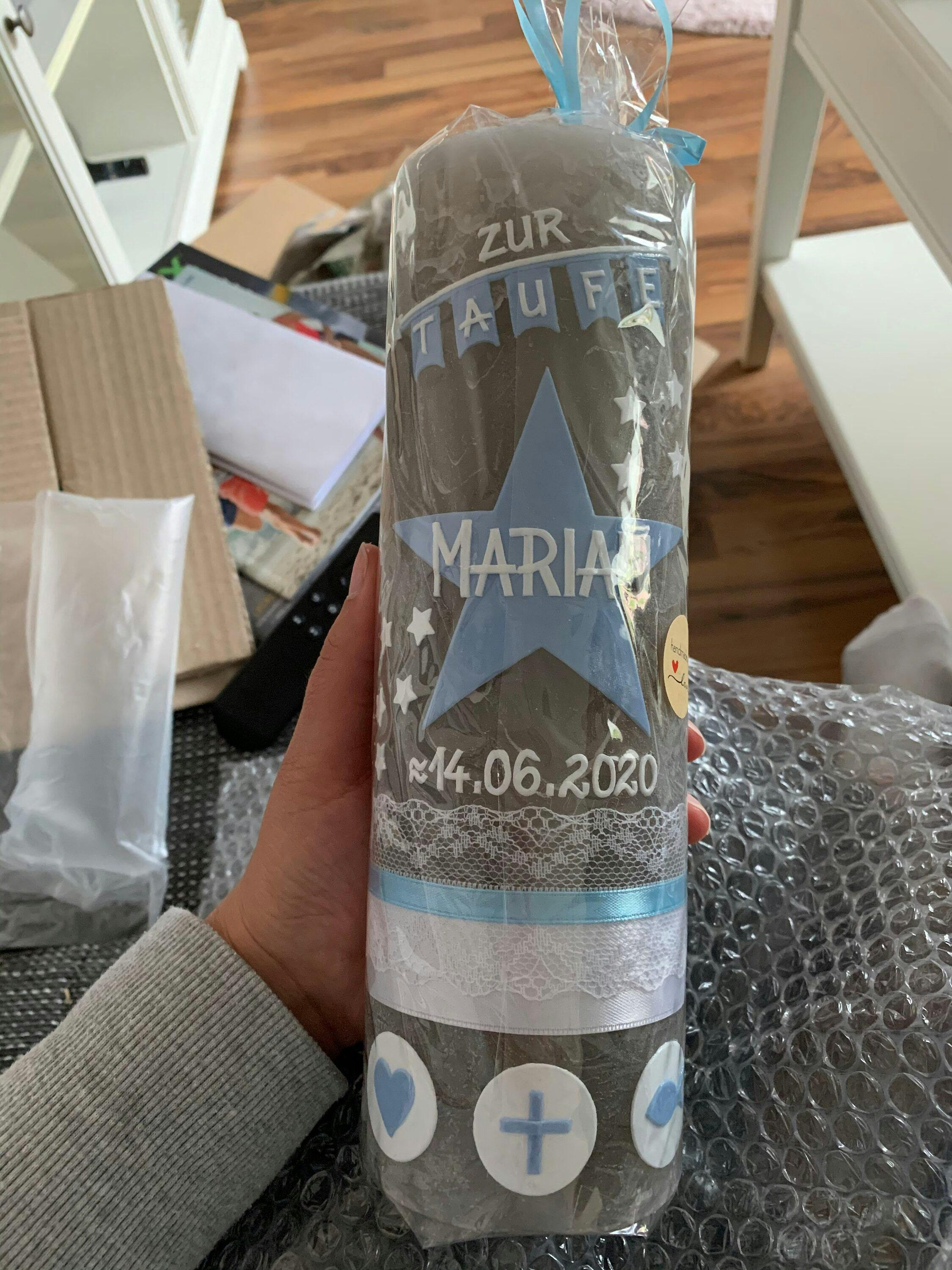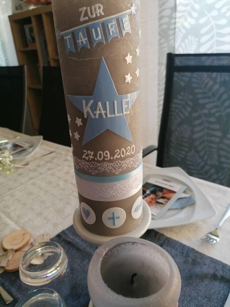 I've ordered baptism candles for all three of my children here, and I'm always very satisfied. My changes and requests are always implemented perfectly, so I can look forward to a beautiful and unique baptism candle. Contact is quick, and the candle is delivered on time. Thank you very much!