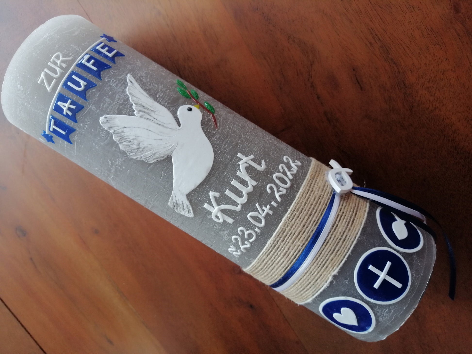 RUSTICA, VINTAGE-Look, SHABBY, Rustikal, Taufkerze, Friedenstaube, Taube, Mädchen, Junge, Brombeere, Wachsbeschriftung, Farbwünsche möglich