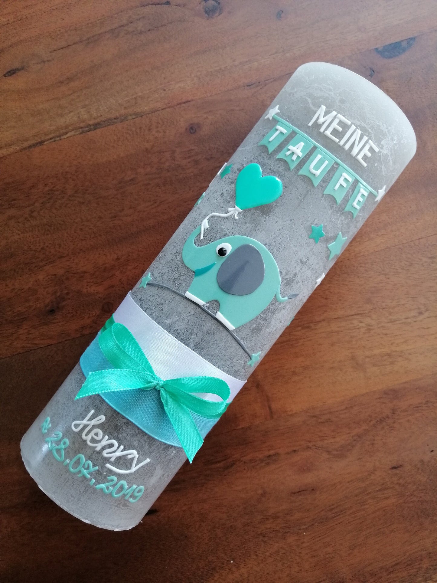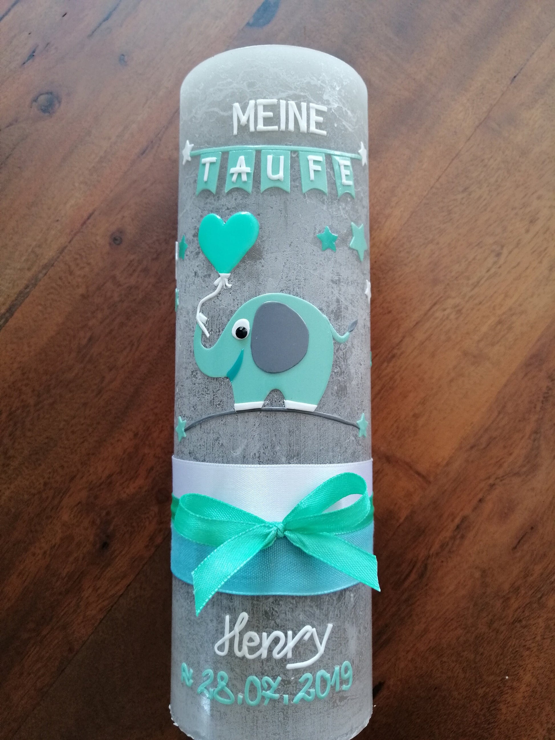 Taufkerze Elefant mit hochwertigen Wachsverzierungen