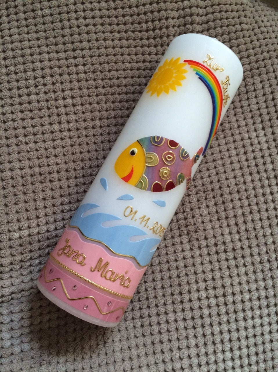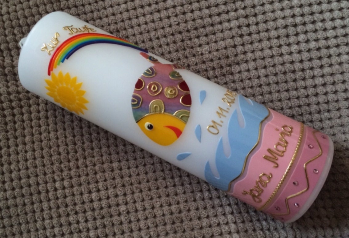 I've ordered baptism candles for all three of my children here, and I'm always very satisfied. My changes and requests are always implemented perfectly, so I can look forward to a beautiful and unique baptism candle. Contact is quick, and the candle is delivered on time. Thank you very much!