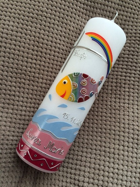 Taufkerze bunter Fisch