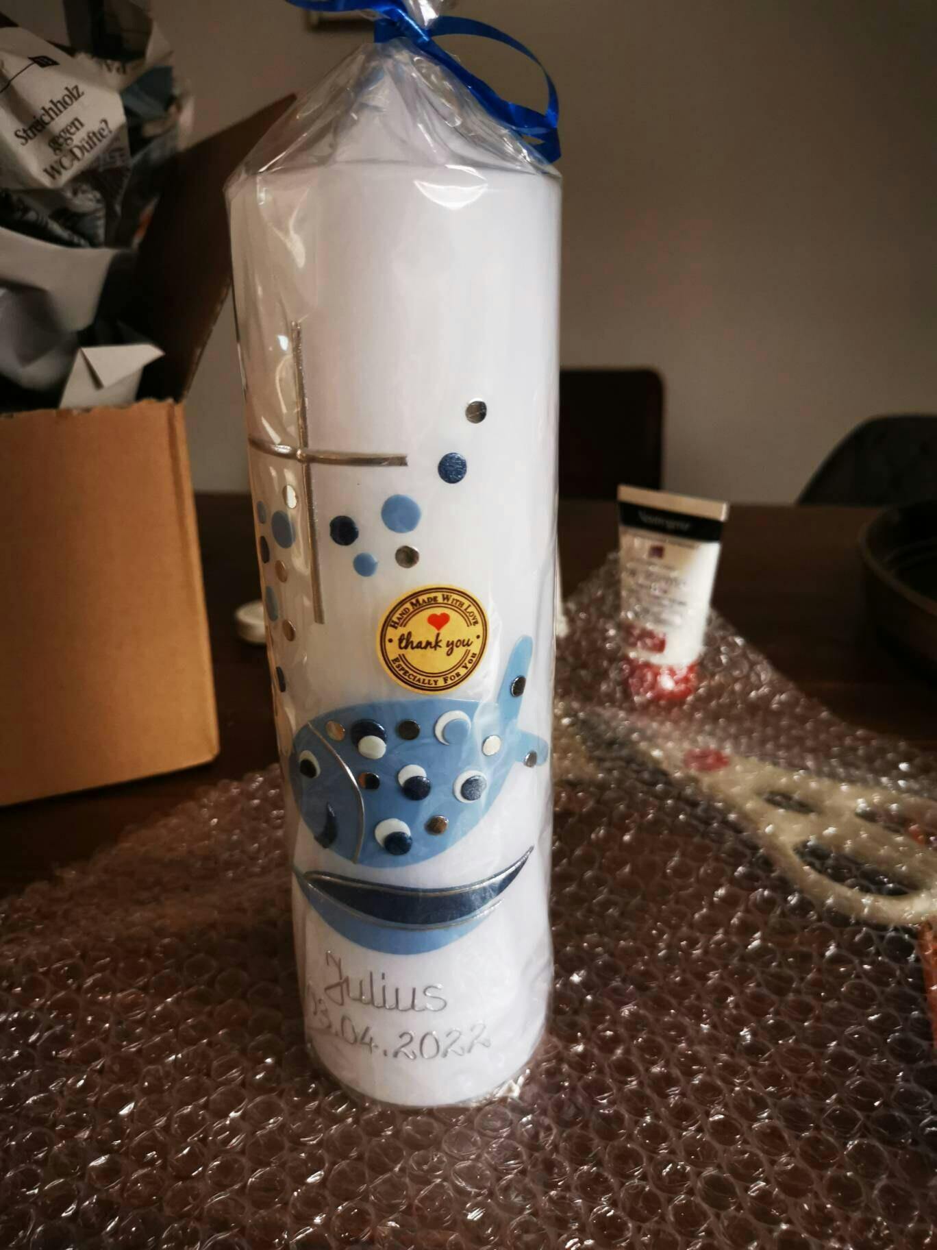 A beautiful communion candle, lovingly crafted. Friendly service. A unique gift. Thank you so much.