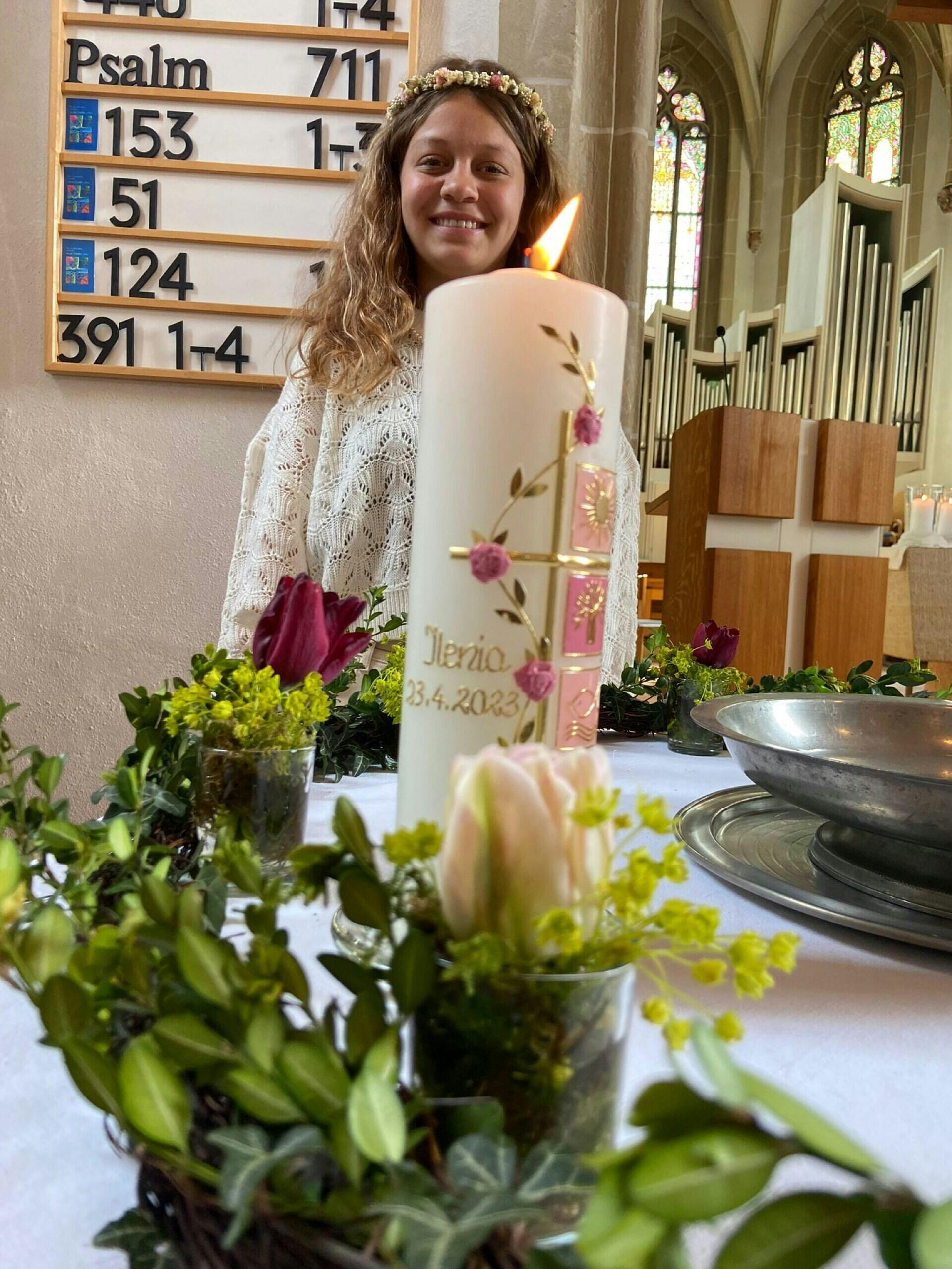 A beautiful communion candle, lovingly crafted. Friendly service. A unique gift. Thank you so much.
