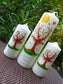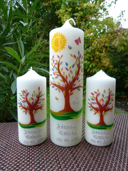 Die Verzierung auf den Kerzen wird in liebevoller Handarbeit für Sie erstellt.
